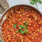 Chickpeas with chorizo in spicy tomato sauce