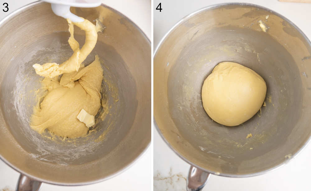 - Knead the ingredients for a couple of minutes until well combined, then gradually add the soft butter, one small piece after the other, and mix until incorporated.
